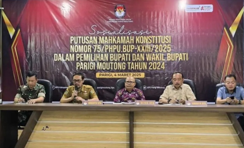 Harian Sulawesi | Parimo – Pj. Bupati Parigi Moutong Sulawesi Tengah melalui Sekertaris Daerah Zulfinasran SSTP MAP saat menghadiri sosialisasi amar putusan MK di Aula Kantor KPU Parimo Selasa (04/03/2025) menyatakan siap menjalankan amar putusan Mahkamah Konstitusi (MK) terkait Pemungutan Suara Ulang (PSU) di daerahnya.