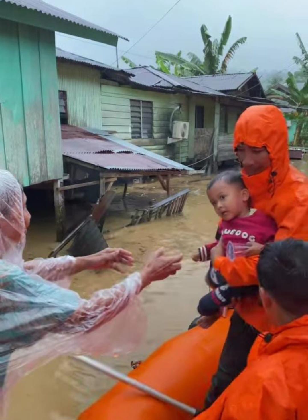 Ket: Tim SAR sedang mengevakuasi warga saat banjir bandang melanda (f-MR)