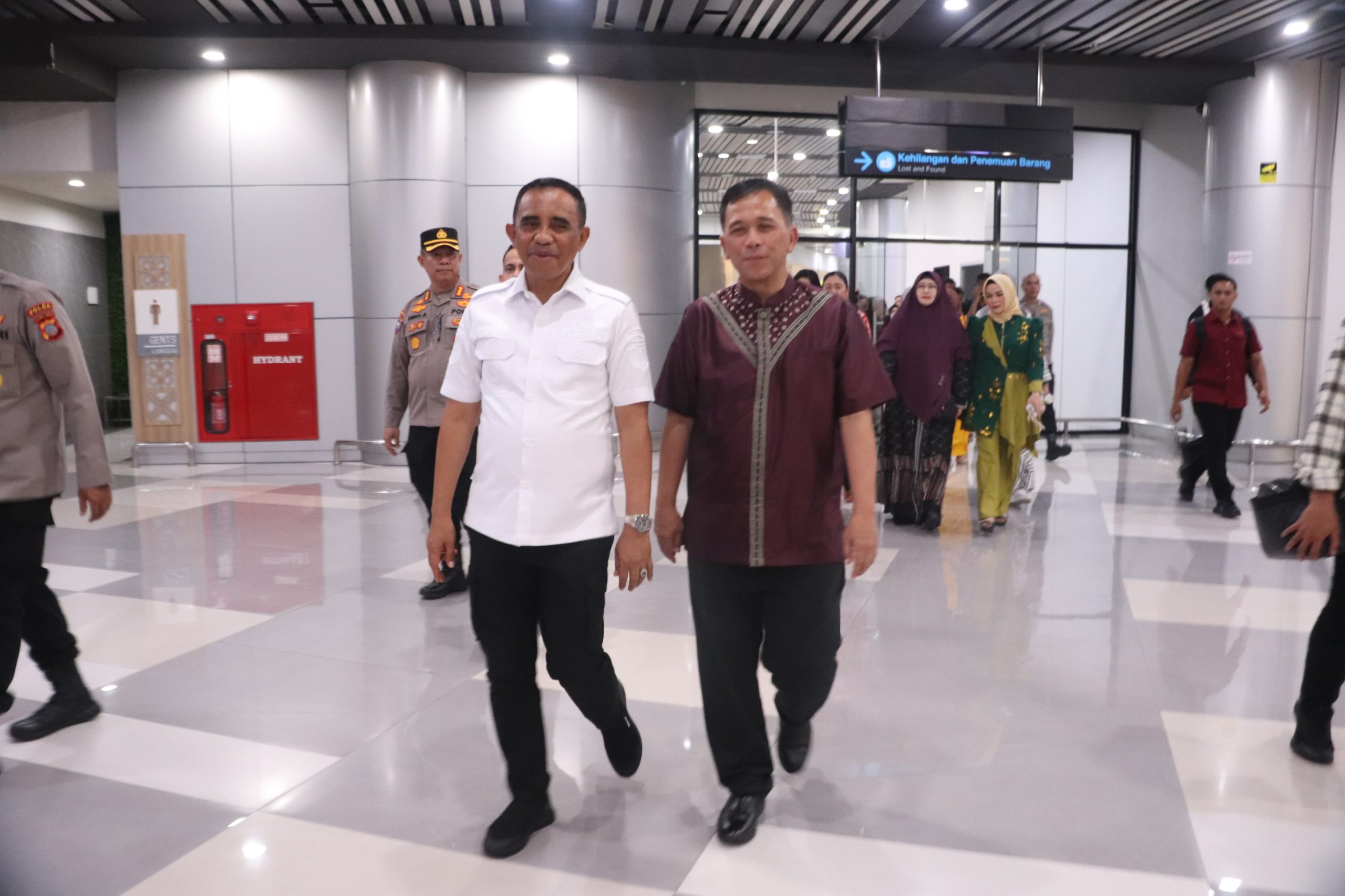 Irjen Endi Sutendi tiba bersama istrinya, Ida Endi Sutendi, menggunakan penerbangan komersial sekitar pukul 14.00 WITA. Suasana penyambutan berlangsung penuh keakraban dan kehangatan.